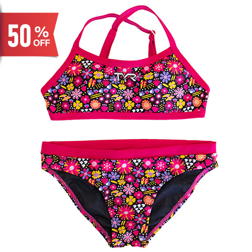 【アウトレット|ピンクXLサイズ】TYR×GUARD / 女性水着_スモールフラワーパターン(ビキニタイプ) レディース トレーニング水着 [GUD-WFLW22]